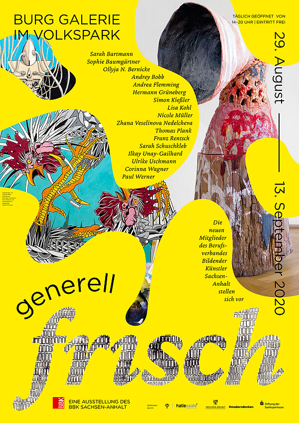Beteiligte Künstler*innen Sarah Bartmann | Sophie Baumgärtner | Ollyja N. Bernicke | Andrey Bobb | Andrea Flemming | Hermann Grüneberg | Simon Kießler | Lisa Kohl | Nicole Müller | Zhana Veselinova Nedelcheva | Thomas Plank | Franz Rentsch | Sarah Schuschkleb | Ilkay Unay-Gailhard | Ulrike Uschmann | Corinna Wagner | Paul Werner